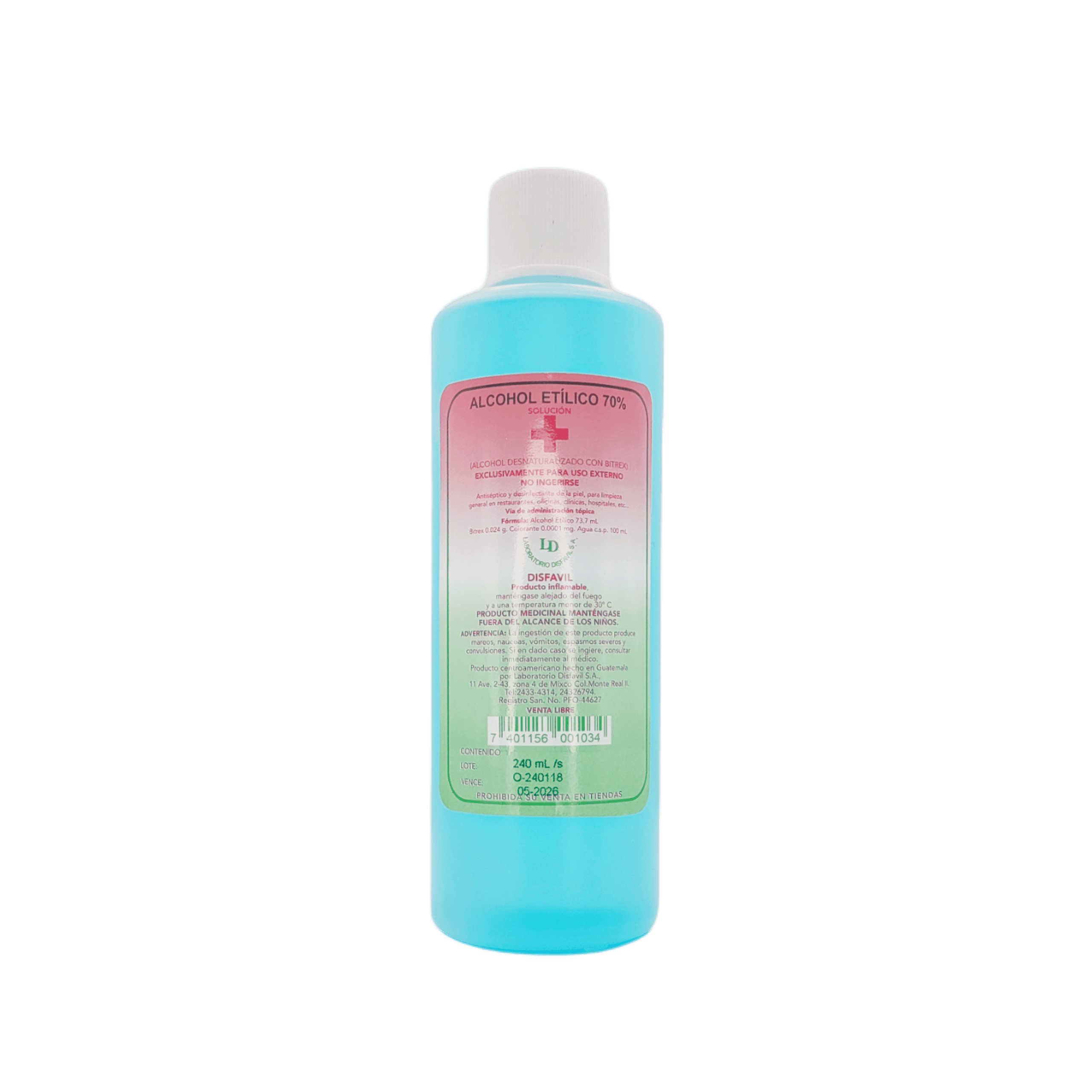 Alcohol Etilico Disfavil 70%, frasco 240ml