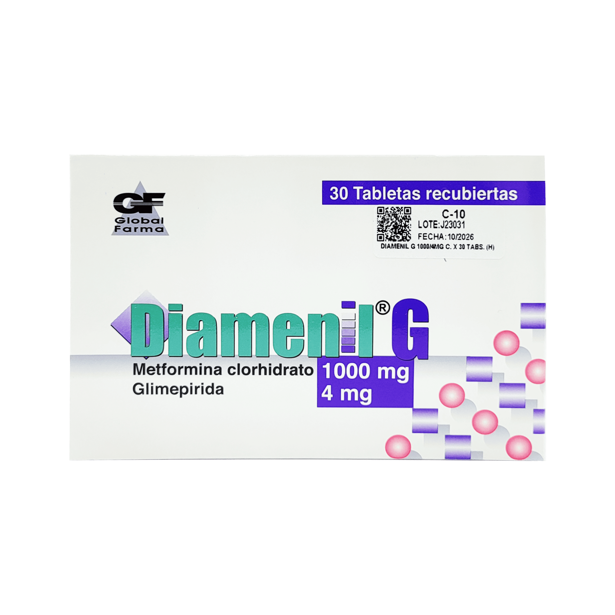 Diamenil G 1000/4mg, 30 tabletas