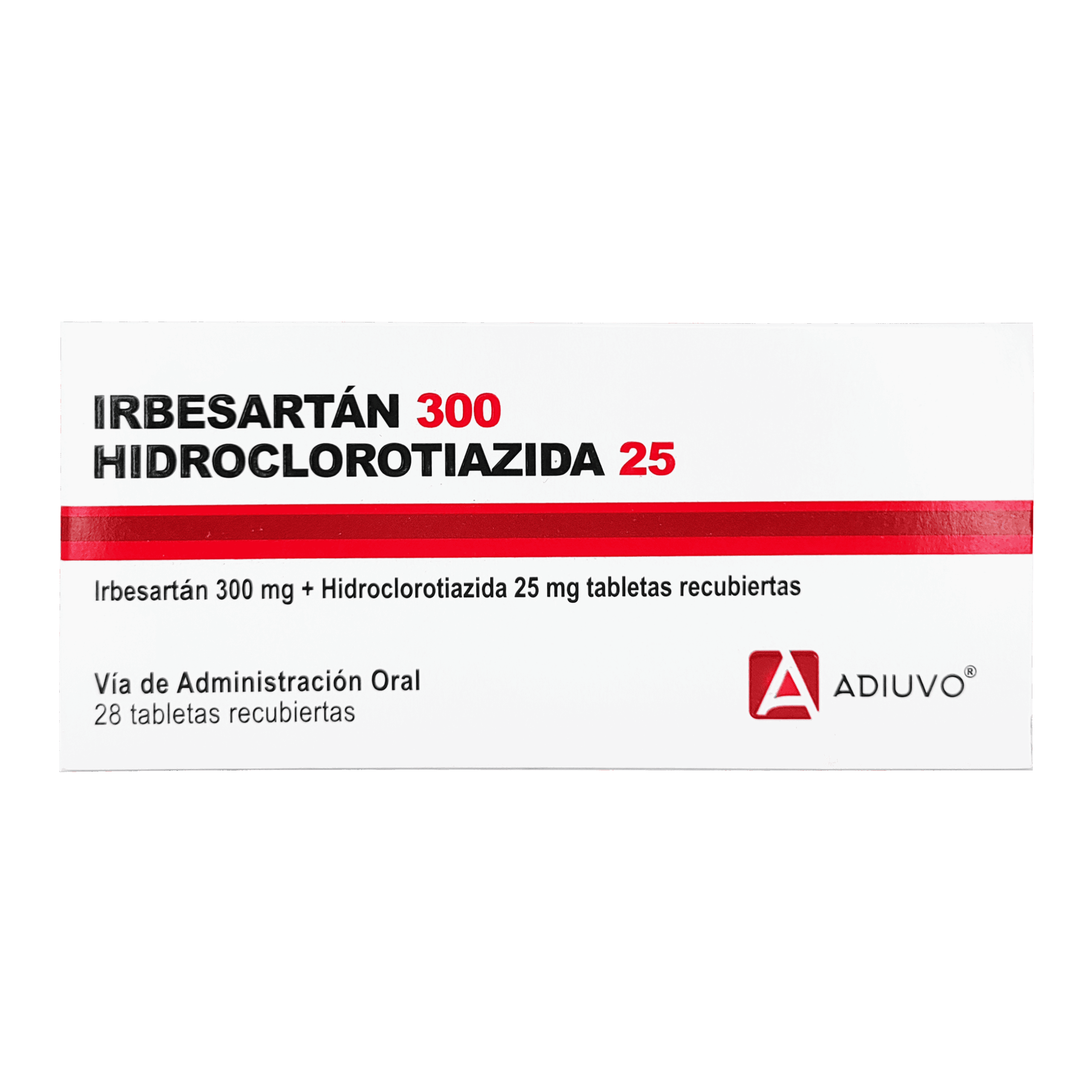 Irbesartán+ Hidroclorotiazida Adiuvo 300mg /25mg , 28 Tabletas Recubiertas